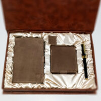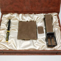 Coffret Luxueux En Cuir Véritable Nubuck – pack trio – Marron Camel –