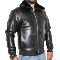 Veste En Cuir Véritable Pour Homme MVH-SU57 Noir