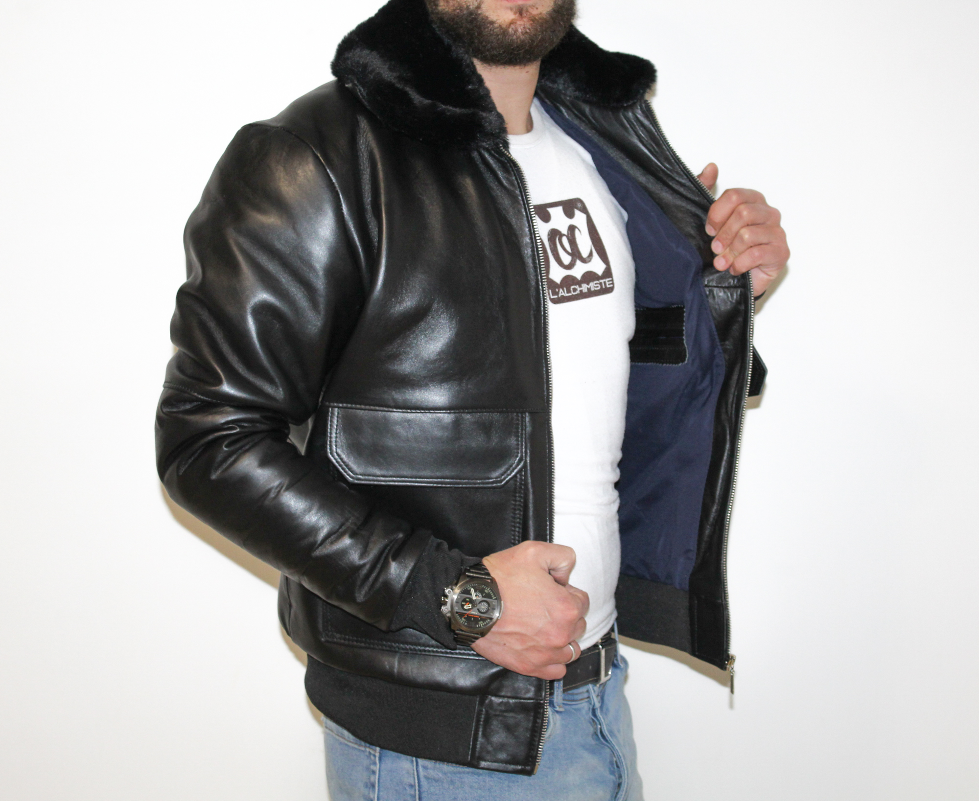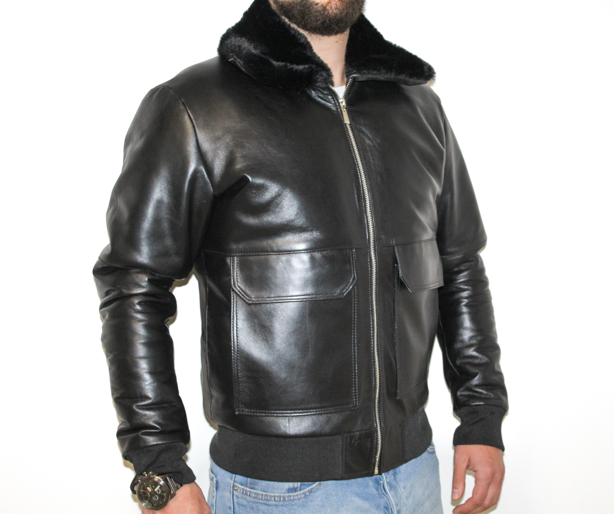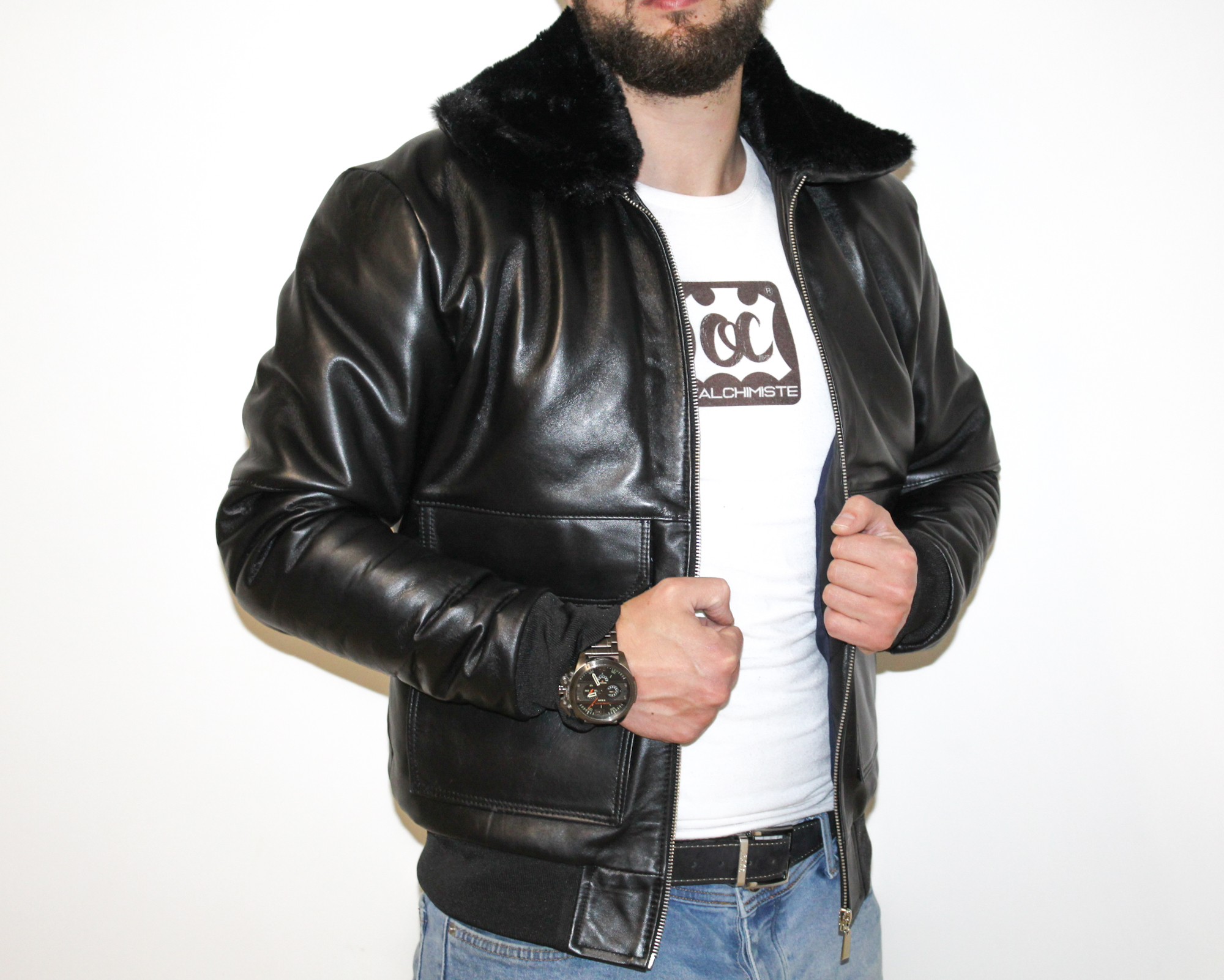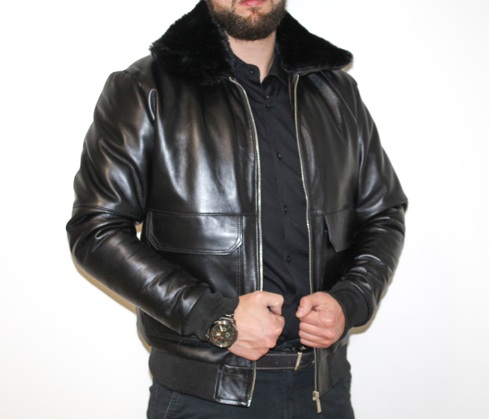 Veste En Cuir Véritable Pour Homme MVH-SU57 Noir